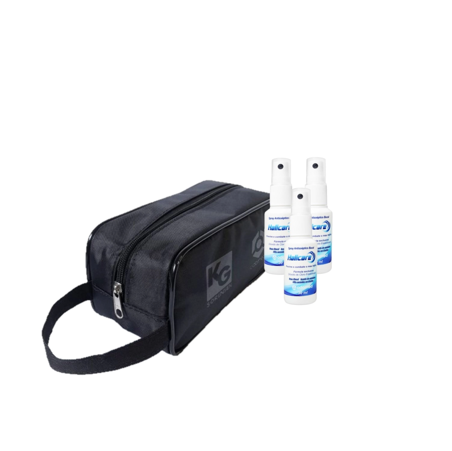 Trata-se de um antimicrobiano e bactericida de largo espectro com a ação eficaz na prevenção e combate a infecções bucais. Possui como princípio ativo o Dióxido de Cloro Estabilizado que age no organismo por meio de mecanismos diferentes. Este Kit Contém: Odomed Halicare - Spray Antisséptico Bucal 30ml (3 unidades): complementa a utilização do Enxaguante. Seu formato permite que ele seja levado a qualquer lugar, na bolsa ou no bolso. Odomed Halicare – Necessaire: ítem enviado como organizador (cortesia) Conselho de Aplicação Spray Antisséptico Bucal: a aplicação do Spray Halicare é realizada por um jato de spray diretamente na parte central da línguaKit Odomed Halicare Tratamento AntiMicroniano Bucal (2 Produtos)