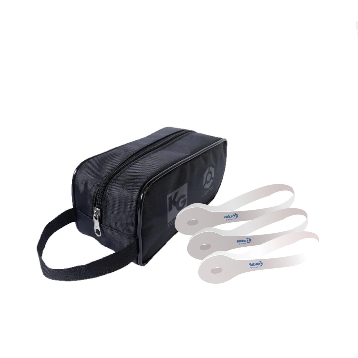 Trata-se de um antimicrobiano e bactericida de largo espectro com a ação eficaz na prevenção e combate a infecções bucais. Possui como princípio ativo o Dióxido de Cloro Estabilizado que age no organismo por meio de mecanismos diferentes. Este Kit Contém: Odomed - Limpador de Língua (3 unidades): desenvolvido para tornar a limpeza da língua eficiente, de maneira simples e sem causar desconforto. Sua espessura e flexibilidade permitem que seja utilizado abrangendo a língua por completa evitando desconforto. Possui uma pequena área serrilhada que elimina a saburra lingual sem causar ferimentos ou irritação na língua. Odomed Halicare – Necessaire: ítem enviado como organizador (cortesia) Conselho de Aplicação O Limpador Halicare deve ser dobrado com o logotipo para o lado de fora. Coloque-se de frente para o espelho para facilitar a limpeza da língua, que deve ser feita em três etapas: •Terço Lateral Direito: inicie a limpeza na parte direita da língua. Coloque o raspador no fundo da língua e arraste a massa de células, bactérias e muco até a ponta da língua. Repita esse movimento vinte vezes. Os movimentos devem ser delicados, porém eficientes. •Terço Lateral Esquerdo: inicie a limpeza da parte esquerda da língua. O movimento também deve ser realizado vinte vezes.Novamente, os movimentos devem ser delicados e eficientes. •Terço Central: na região central da língua, o raspador deve ser colocado o mais fundo possível. A limpeza deve ser realizada com mais delicadeza porque essa região é formada de papilas mais altas do que as regiões anteriores. A limpeza da língua deve ser realizada duas vezes ao dia, após o café da manhã e à noite antes de dormir. O melhor momento para utilizar o Enxaguante Halicare é após essa limpeza. Kit Odomed Halicare Tratamento ao Combate de Infecções Bucais (2 Produtos)