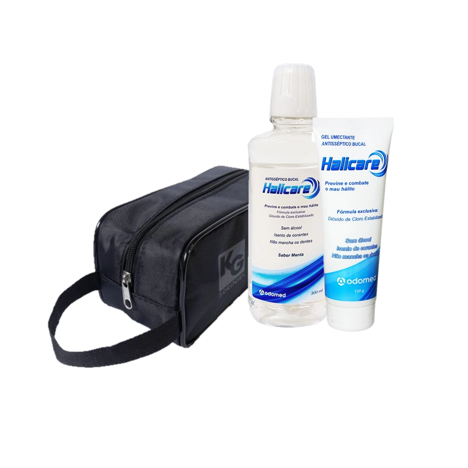 Kit Odomed Halicare Tratamento de Higienização (3 Produtos) Trata-se de um antimicrobiano e bactericida de largo espectro com a ação eficaz na prevenção e combate a infecções bucais. Possui como princípio ativo o Dióxido de Cloro Estabilizado que age no organismo por meio de mecanismos diferentes. Este Kit Contém: Odomed Halicare - Enxaguante Antisséptico Bucal 300ml: desenvolvido especialmente para prevenir e combater as infecções bucais, protegendo sua boca da ação das bactérias que causam uma série de doenças, através de sua fórmula exclusiva a base de dióxido de cloro estabilizado. Odomed Halicare - Gel Umectante Antisséptico 120g: possui o mesmo princípio ativo protetor do Enxaguante Halicare. Sua grande vantagem é que, além dos já mencionados benefícios, é um excelente lubrificante bucal, deixando a boca umedecida e refrescante. Odomed Halicare – Necessaire: ítem enviado como organizador (cortesia) Conselho de Aplicação Enxaguante: o Enxaguante Halicare possui tampa dosadora. Coloque de 5 a 10 ml na boca e faça vários gargarejos. Fazer gargarejos é muito importante para o processo de limpeza da língua e da garganta. O gargarejo e/ou bochecho deve ser realizado durante um minuto. Ao final do procedimento cuspa o produto. Após realizar o procedimento, fique durante 30 minutos sem comer ou beber. Portanto, o Enxaguante Halicare deve ser o último procedimento de sua higienização bucal.