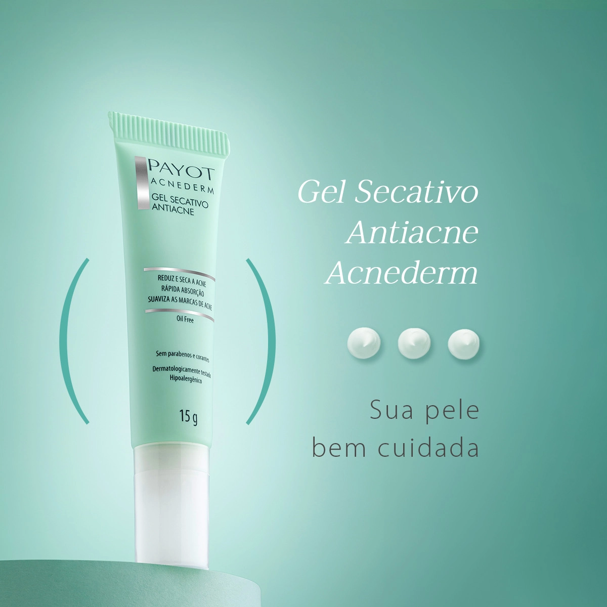 Esse Kit contém Payot Acnederm Higienizante - Sabonete Líquido Facial 210ml: facial para peles oleosas e acneicas. purifica o rosto enquanto reduz a oleosidade e o surgimento de espinhas. possui ativos antibacterianos que equilibram a pele. Sua limpeza profunda não irrita o rosto. Você conquista uma rotina de cuidado que trata a acne e a oleosidade. Payot Acnederm - Gel Hidratante Antiacne 40g: reduz e previne a acne, controla a oleosidade, hidrata a pele e diminui os poros dilatados. é indispensável no cuidado da pele acneica e oleosa. Sua fórmula tem ação antiinflamatória, calmante e antibacteriana. Hidrata sem deixar o rosto oleoso ou brilhante e tem textura refrescante e de rápida absorção. Payot Acnederm - Gel Secativo 15g: reduz e seca a acne, além de prevenir o aparecimento de novas espinhas. possui uma ação refrescante, ameniza sensação de desconforto e diminui as marcas causadas pelas espinhas. Ele vem em uma bisnaga que além de bonita é prática e conta com um bico oftalmológico que garante a dosagem ideal na região desejada. Conselho de AplicaçãoKit Payot Acnederm Gel Hidratante Antiacne Secativo e Sabonete Líquido (3 produtos)