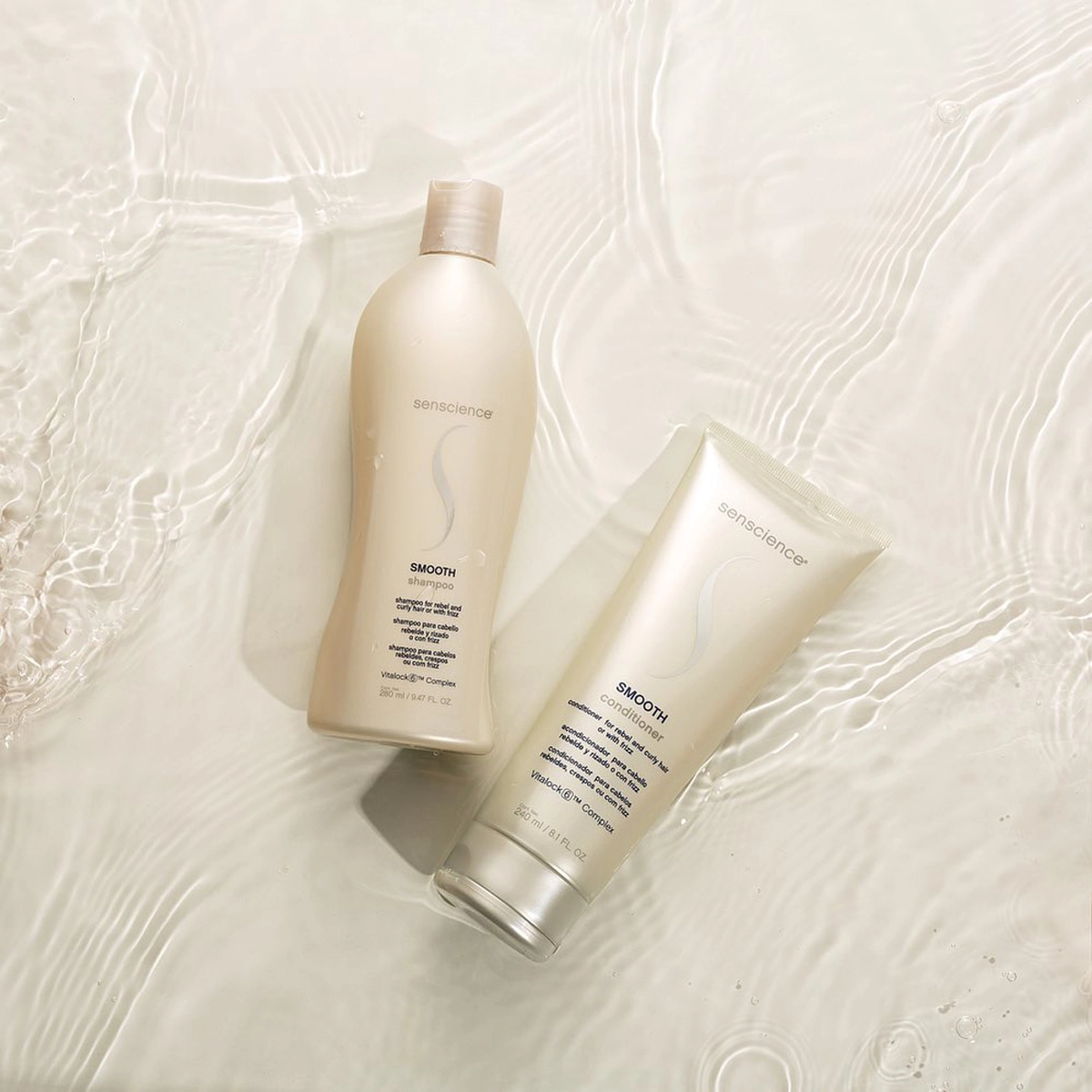 Senscience Smooth Conditioner - Condicionador 240ml: para cabelos rebeldes, com frizz, cacheados ou grossos. Desembaraça e condiciona, disciplinando e reduzindo o aspecto arrepiado. Nutre a fibra capilar, restaurando as áreas danificadas, proporcionando maciez e flexibilidade.
