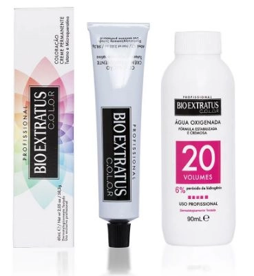 BIO EXTRATUS COLOR CREME PERMANENTE possui uma formulação única e especial que proporciona um tratamento nutritivo e reconstrutor. Sua fórmula cremosa oferece: - Revelação precisa e homogênea da cor - Cobertura de até 100% dos fios brancos - Tom intensamente duradouro - Maior fixação da cor - Maciez e luminosidade - Tratamento com tutano e microqueratina - Maior rendimento - Menor irritabilidade - Brilho extremo Bio Extratus Color Água Oxigenada 20 Volumes (6% de peróxido de hidrogênio) é recomendada para técnicas de coloração permanente, com excelente resultado para escurecer e clarear até 2 tons. Misturada ao pós descolorante, pode ser usada para fazer mechas, clareando até 7 tons. Entre as águas oxigenadas é a mais indicada para cobertura de cabelos brancos. Com fórmula estabilizada e cremosa, para uso profissional.
