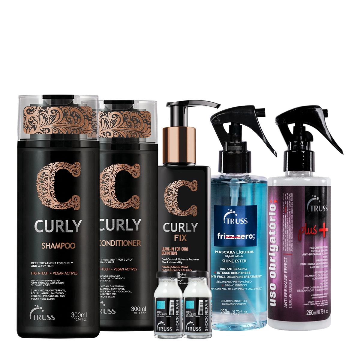 Kit Truss Curly Shampoo Condicionador Fix Uso Obrigatório Plus Frizz Zero e Shock Repair (7 produtos)
