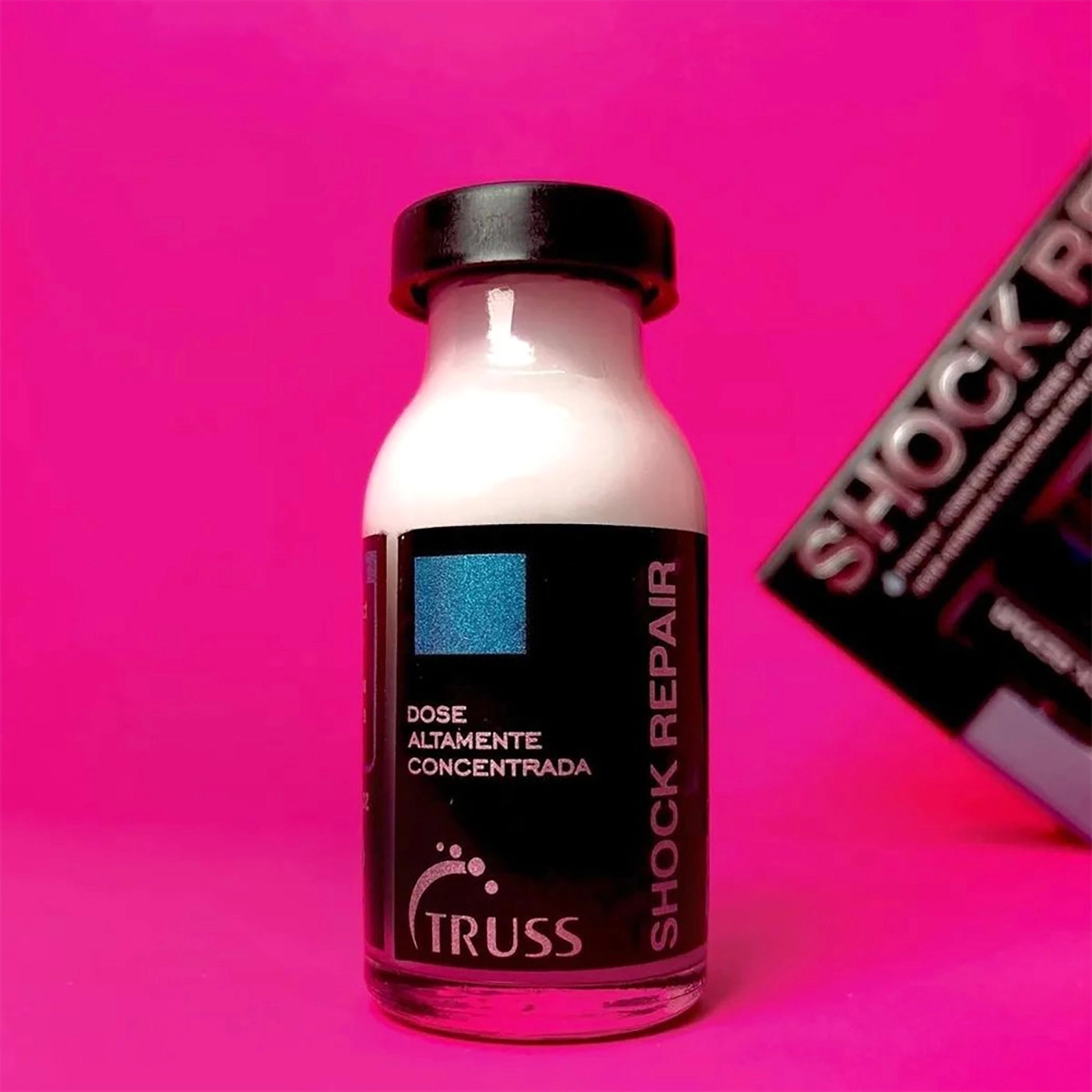 Shock Repair: aplique uma dose por todo o cabelo limpo e úmido. Massageie mecha a mecha e deixe agir por 3 minutos. Enxágue.