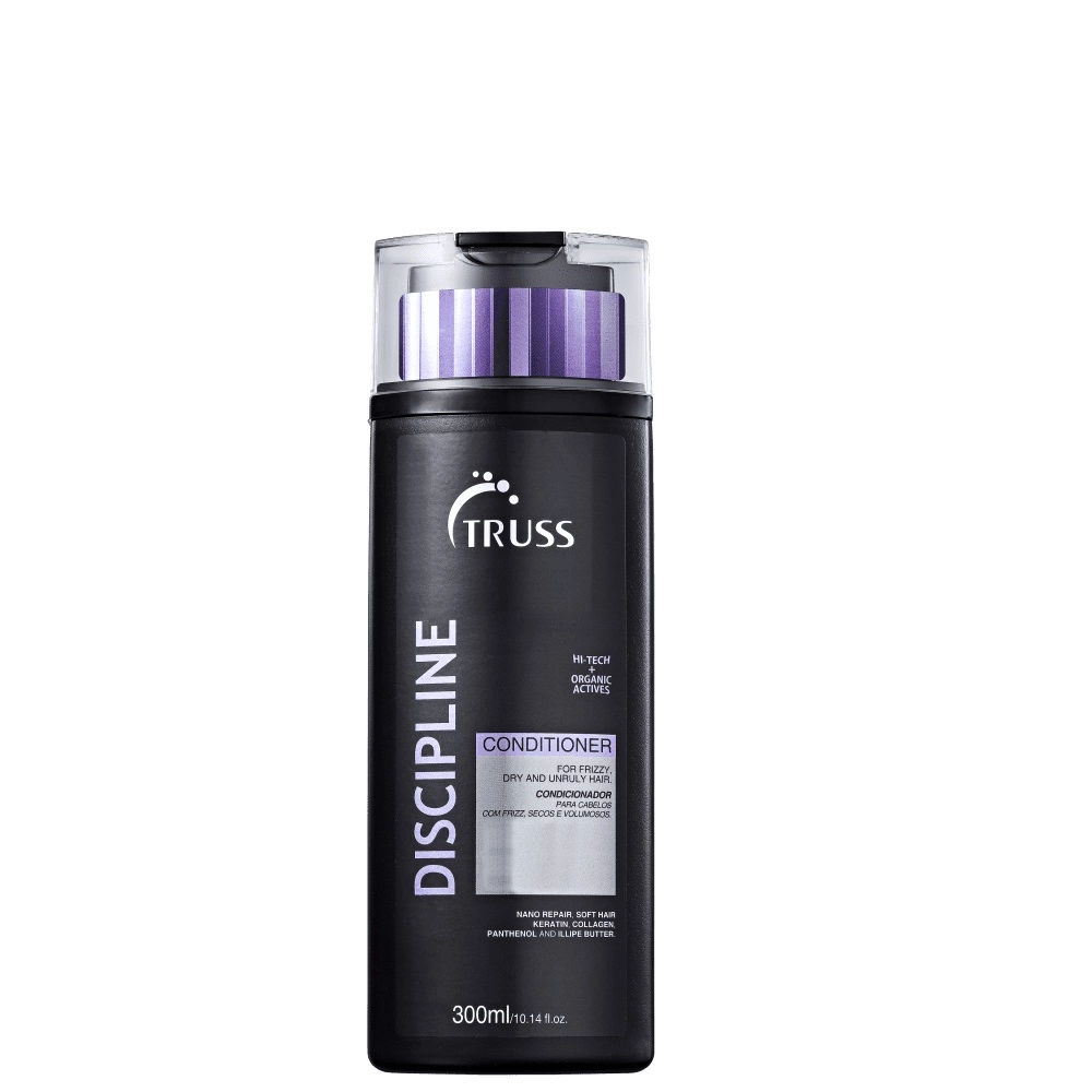 Discipline foi especialmente desenvolvido para acabar com os fios rebeldes e o frizz. Além de serem extremamente hidratantes, estes produtos disciplinam, alinham e controlam o cabelo enquanto conferem brilho e suavidade. Este Kit Contém Truss Discipline - Shampoo 300ml: Shampoo para cabelos com frizz, secos e volumosos. Promove efeito disciplinado aos fios enquanto confere brilho, corpo e reduz as pontas duplas. Truss Discipline Conditioner - Condicionador 300ml: Condicionador para cabelos com frizz, secos e volumosos. Extremamente hidratante, proporciona efeito disciplinante enquanto confere brilho e corpo aos fios, por muito mais tempo. Truss Uso Obrigatorio - Tratamento Reconstrutor 260ml: recupera o aspecto saudável enquanto disciplina e protege do calor. Como Usar Conselho de Aplicação Shampoo: Aplique o shampoo no cabelo molhado e massageie de forma suave até formar espuma. Enxágue e, caso necessário, lave os fios mais uma vez. Condicionador: Retire o excesso de água dos fios e distribua o condicionador no comprimento e pontas. Massageie, desembarace, deixe agir por 2 minutos e enxágue. Uso Obrigatorio: Ele pode ser plicado como tratamento ou leave-in. Para o primeiro resultado, após lavar o cabelo com shampoo, aplique o reconstrutor e, sem enxaguar, siga para o uso do condicionador. Para o segundo, aplique sobre o cabelo limpo e úmido. Finalize como desejar.Kit Truss Discipline Anti Frizz Cabelos Rebeldes (3 Produtos)