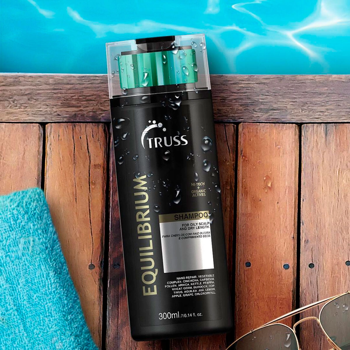 Kit Truss Equilibrium Frizz Zero Spa (3 produtos) Este Kit Contém Truss Equilibrium - Shampoo 300ml: indicado para cabelos mistos a oleosos atua no couro cabeludo para regular o excesso de oleosidade da raiz. Truss Frizz Zero - Máscara Líquida Proteção Térmica 260ml: foi desenvolvido para condicionar, hidratar, selar a cutícula capilar e devolver rapidamente a maciez, o brilho e a maleabilidade aos fios. Truss Night Spa - Sérum de Tratamento Noturno 250ml: promove hidratação profunda que revitaliza os fios, além de proporcionar uma blindagem que mantém os nutrientes dentro da fibra capilar. Previne a ação dos agentes externos, que reduzem o frizz e aumenta o brilho. Regenera a fibra capilar danificada e disciplina fios arrepiados. Conselho de Aplicação Sérum: aplique o sérum no comprimento e nas pontas (nunca na raiz) do cabelo seco à noite, mecha a mecha e massageie. Deixe agir durante o sono. No dia seguinte, lave de 2 a 3 vezes como de costume. Máscara Líquida: utilizar antes de lavar os fios, como pré-shampoo, ou durante a lavagem, como máscara líquida. Em cabelos grossos, utilizar depois de lavar os fios, como leave-in, facilitador da escova e protetor térmico.
