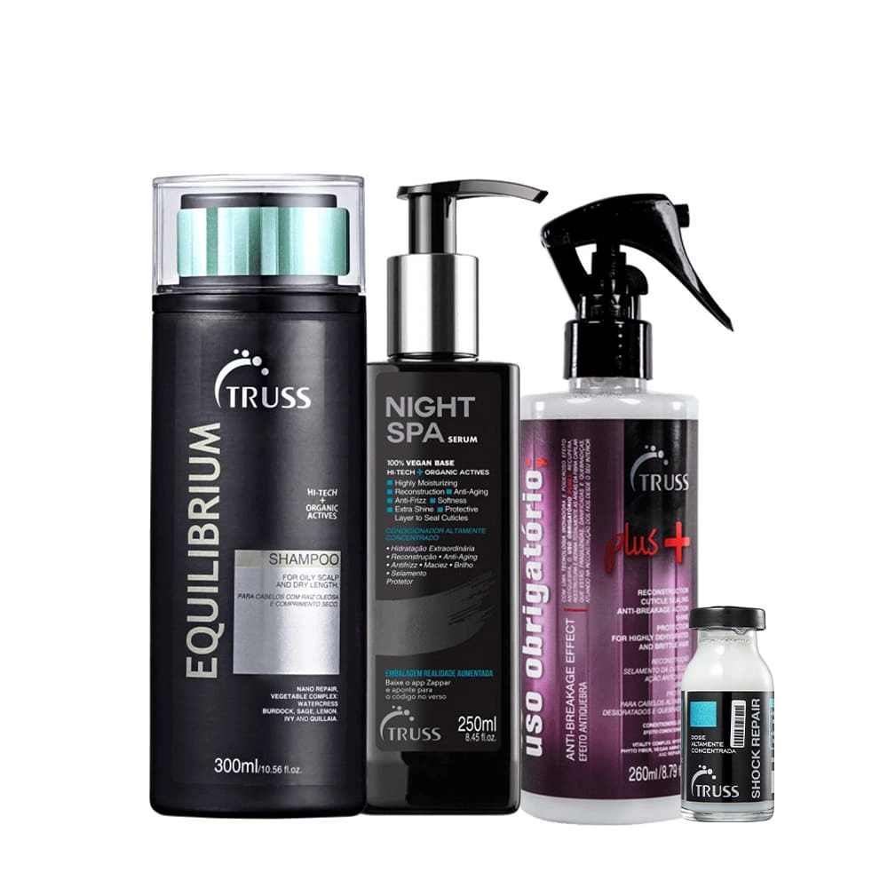 Kit Truss Equilibrium Shampoo Night Spa Uso Obrigatório Plus e Ampola Shock Repair (4 produtos)
