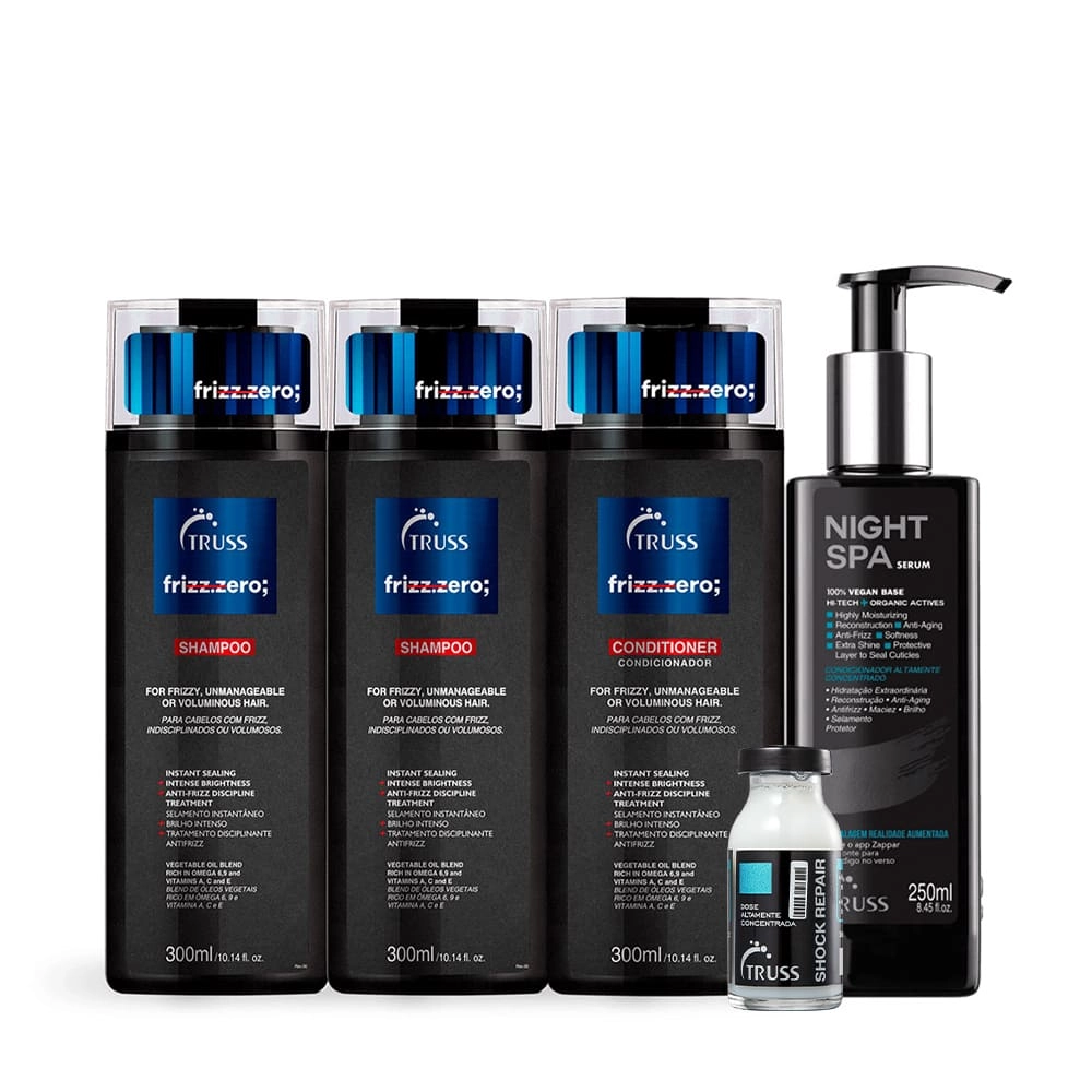 Kit Truss Frizz Zero Shampoo Condicionador Night Spa e Ampola Shock Repair (5 produtos)