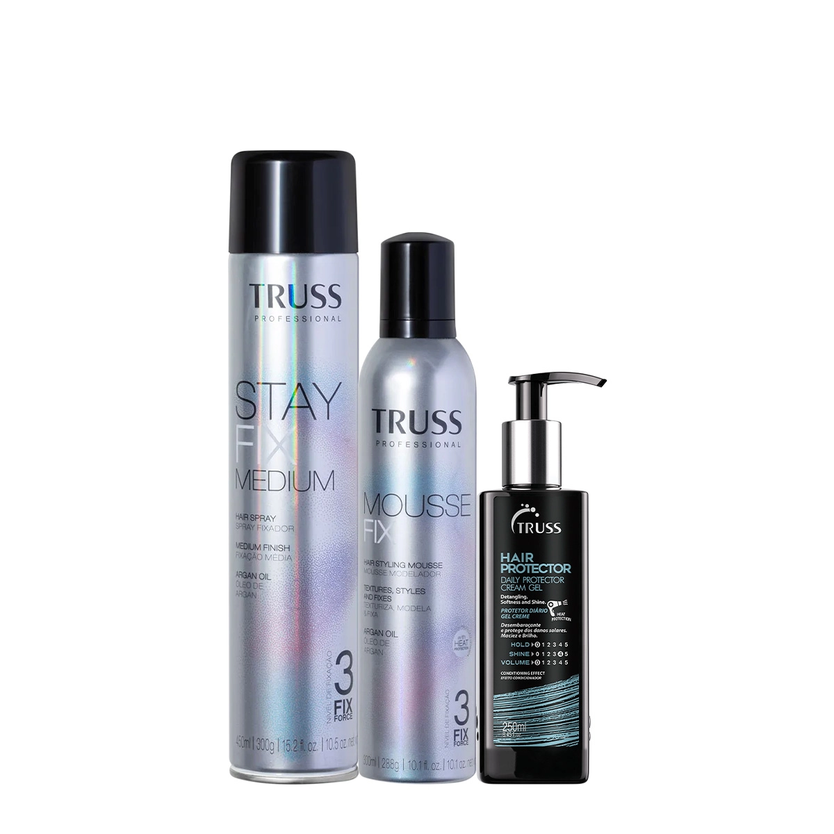 Kit Truss Mousse Fix Mousse Modelador Shine Fix Medium Fixador e Hair Protector (3 produtos)