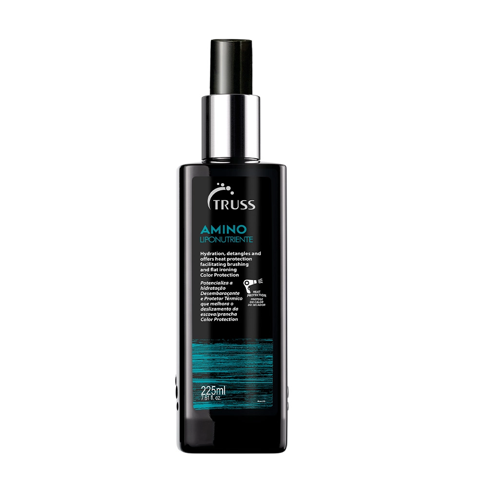 Amino: borrife mecha a mecha antes de passar a prancha ou secar com secador. Para não deixar os fios pesados, aplique o produto aos poucos no cabelo. Repartir o cabelo em mechas é uma boa maneira de gerenciar a quantidade.