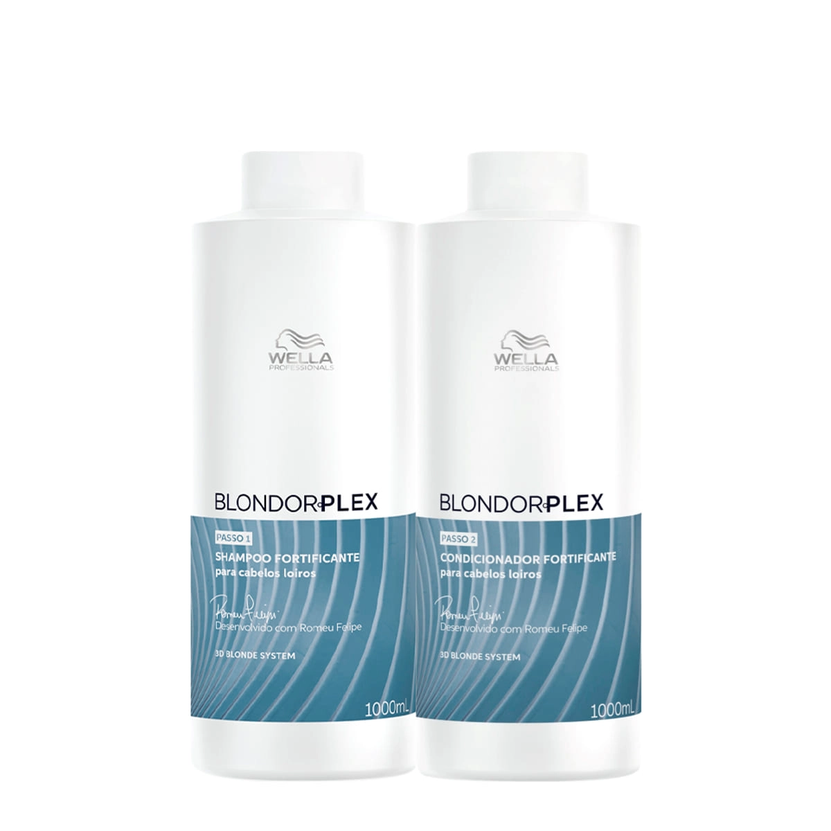 Wella Professionals BlondorPlex - Nutrição e Brilho Intenso para Loiros Este Kit Contém Wella Professionals BlondorPlex - Shampoo 1L: limpa delicadamente, enquanto repara danos causados pela descoloração. Devolve força, brilho e vitalidade aos cabelos loiros fragilizados. Wella Professionals BlondorPlex - Condicionador 1L: nutre e reconstrói profundamente os fios loiros, deixando-os mais fortes, suaves e com brilho intenso desde a primeira aplicação.