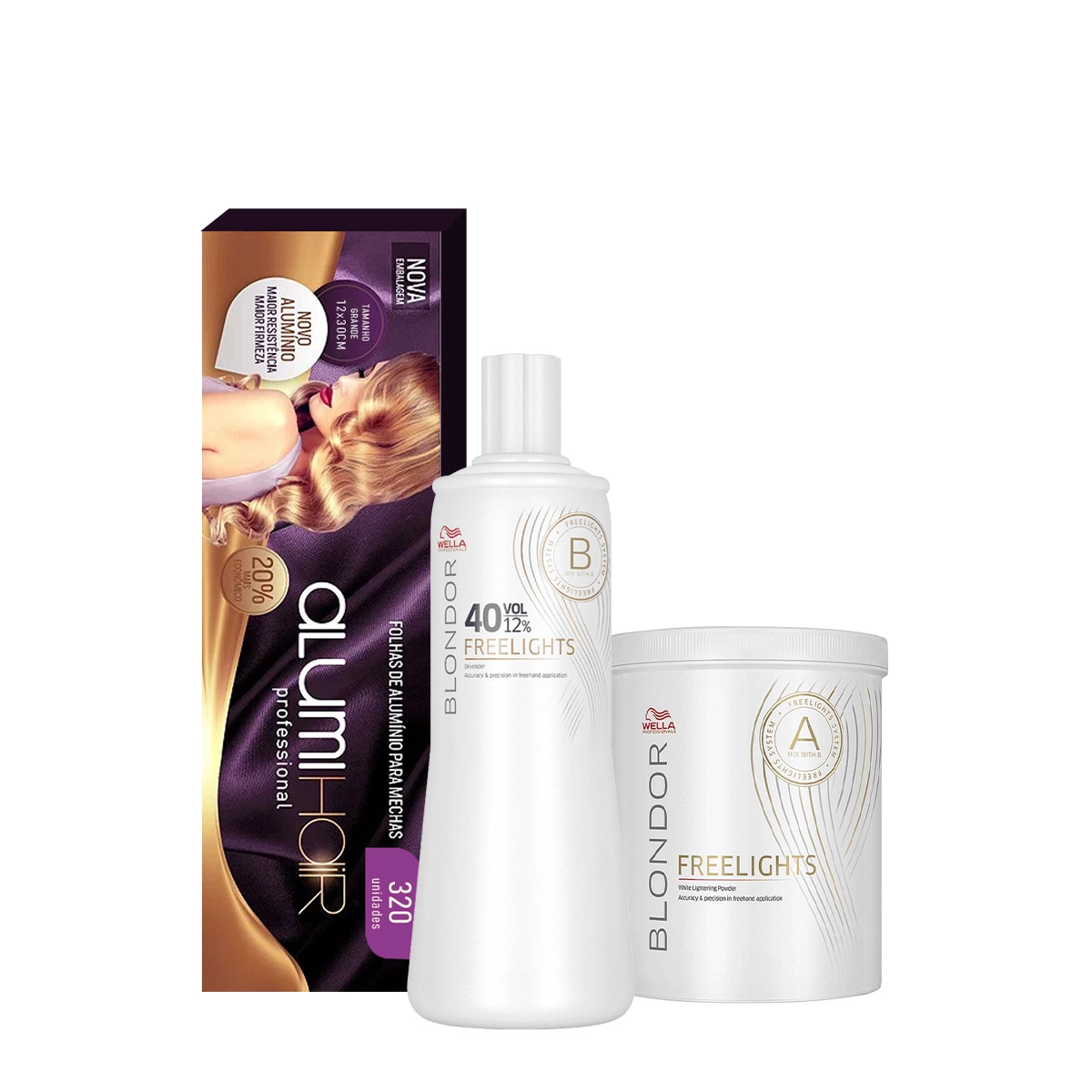 Kit Wella Professionals Freelights Oxidante 12% 40 Volumes + Pó Descolorante e Alumi Hair (3 produtos)