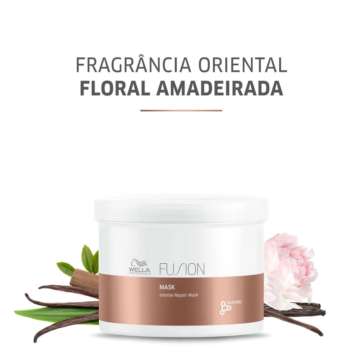 Wella Professionals Fusion - Máscara Reconstrutora 500g: tratamento para cabelos danificados. Repara a fibra capilar e protege de possíveis quebras e agressões enquanto ajuda a revitalizar o fio fragilizado por agressões antigas. A fórmula cremosa também possui agentes condicionantes que facilitam a finalização que você mais gosta do cabelo. Sua fragrância combina nove aromas que remetem à sofisticação, com seus toques de madeira florestal e notas de base quentes, como cedro e sândalo.