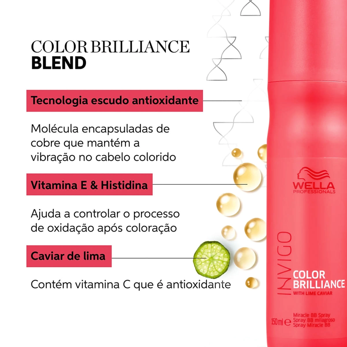 Este Kit Contém Wella Professionals Invigo Color Brilliance - Shampoo 250ml: limpa os fios de forma otimizada para proteger do desbotamento. Preserva a cor vibrante por até 7 semanas. Wella Professionals Invigo Color Brilliance Miracle BB - Leave-in Spray 150ml: confere mais brilho à cor e mantém os fios protegidos do desbotamento. Auxilia no desembaraçar e garante um toque macio e sedoso. Conselho de AplicaçãoKit Wella Professionals Invigo Brilliance Miracle Shampoo Leave-in (2 produtos)