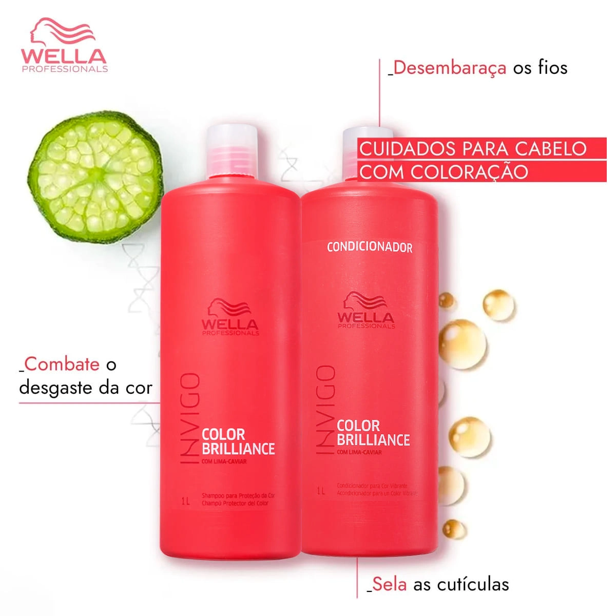 Este Kit Contém Wella Professionals Invigo Color Brilliance - Shampoo 1L: limpa os fios de forma otimizada para proteger do desbotamento. Preserva a cor vibrante por até 7 semanas. Wella Professionals Invigo Color Brilliance - Condicionador 1L: desembaraça os fios e mantém a cor linda e vibrante por mais tempo. Com proteção da cor por até 7 semanas. Conselho de AplicaçãoKit Wella Professionals Invigo Color Brilliance Duo (2 produtos)