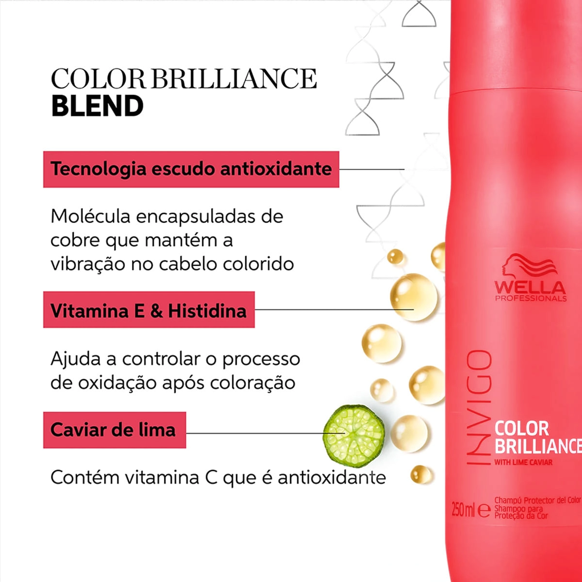 Este Kit Contém Wella Professionals Invigo Color Brilliance - Shampoo 250ml (2 unidades): limpa os fios de forma otimizada para proteger do desbotamento. Preserva a cor vibrante por até 7 semanas. Conselho de AplicaçãoKit Wella Professionals Invigo Color Brilliance Shampoo 250 Extra (2 unidades)