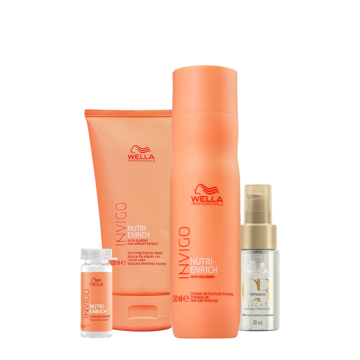 Kit Wella Professionals Invigo Nutri-Enrich Express Light Shampoo Máscara Oil Ampola (4 produtos)