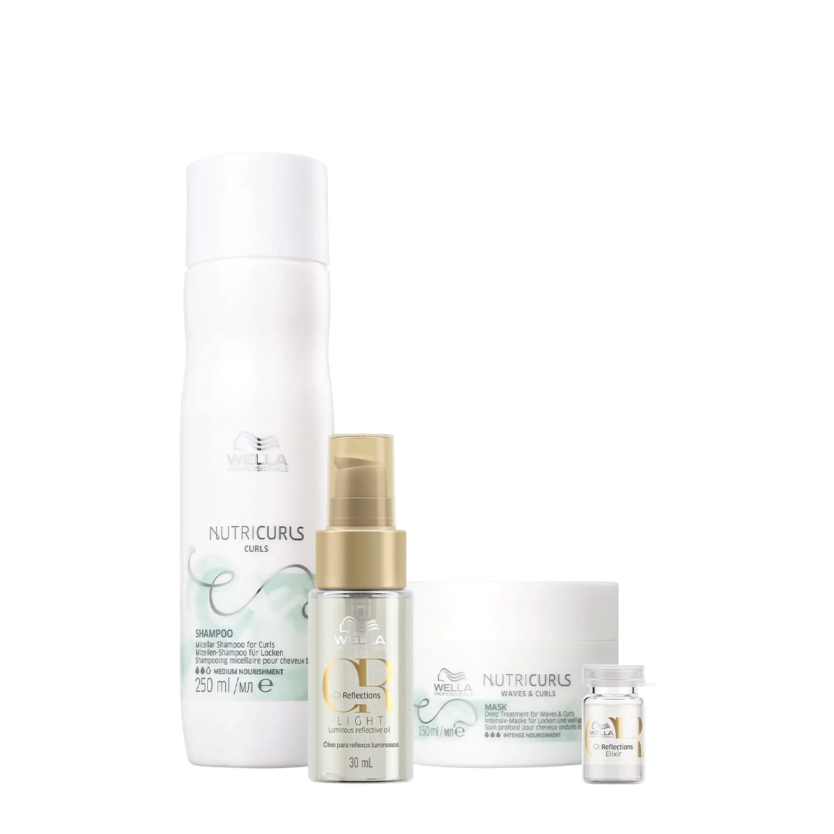 Kit Wella Professionals Nutricurls Shampoo Máscara Oil Light e Ampola Oil Reflections (4 produtos)