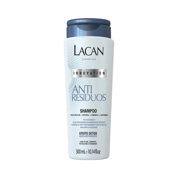 O Shampoo Antirresíduos da Lacan, com tecnologia inovadora, remove profundamente sem ressecar os acúmulos de resíduos cosméticos ou agentes externos como poluição e poeira que ficam retidos no cabelo. Aplicar o Shampoo no cabelo molhado, massageando o couro cabeludo e distribuindo o produto por toda a extensão dos fios.