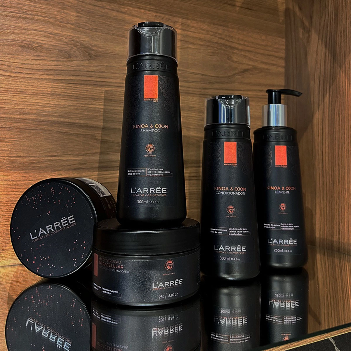 Para cabelos secos e ressecados regenera e fortalece intensamente os cabelos. O Condicionador L'ARRËE Kinoa & Ojon oferece leveza, hidratação e a reconstrução dos fios. Além disso, os ativos exclusivos amenizam o frizz, devolvem a elasticidade das madeixas e conferem um brilho intenso. Conselho de AplicaçãoLARREE Kinoa & Ojon - Condicionador 300ml
