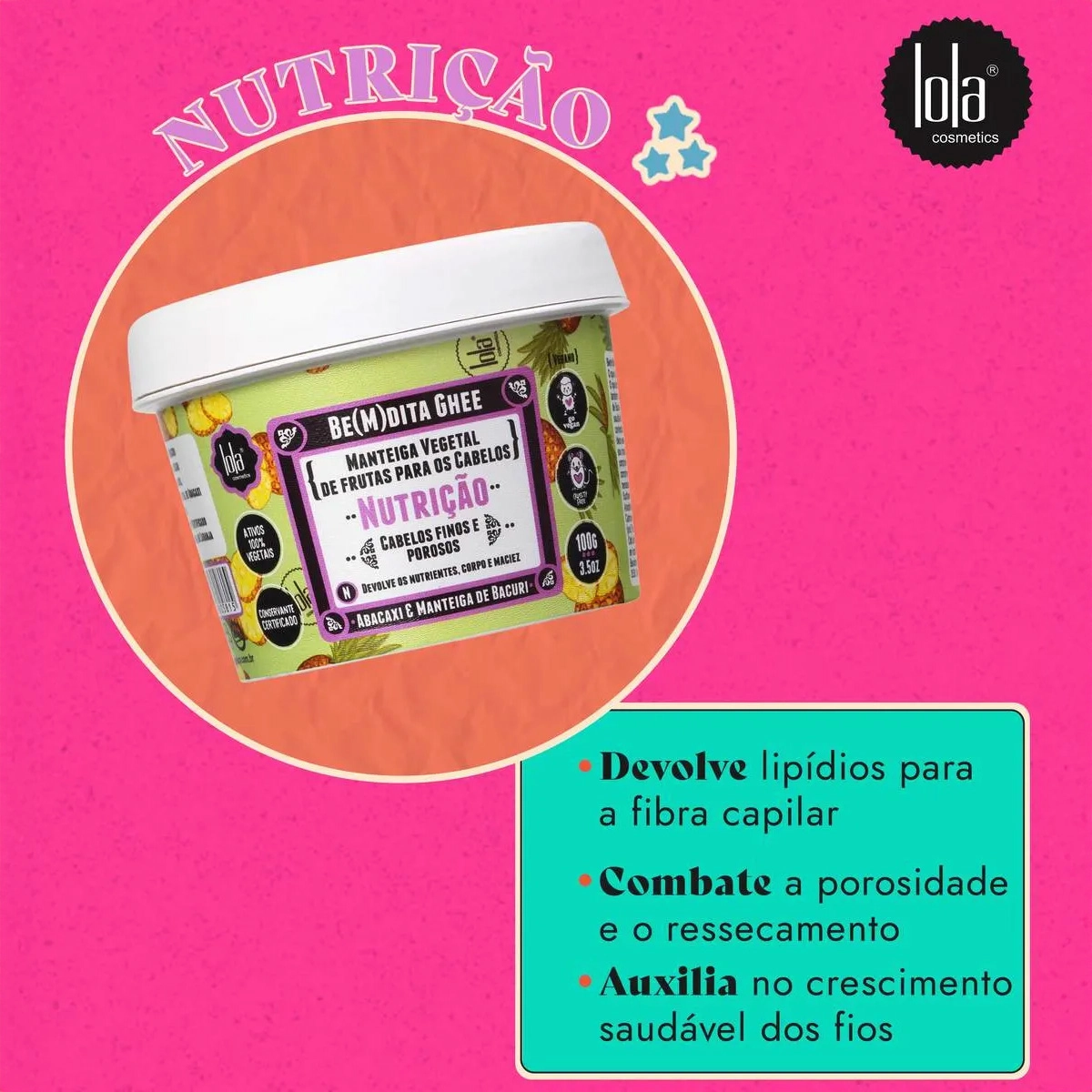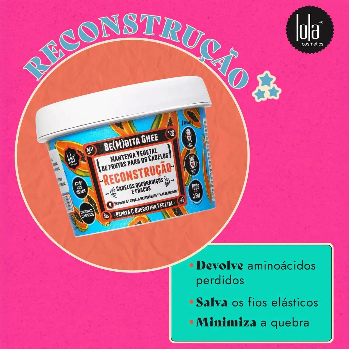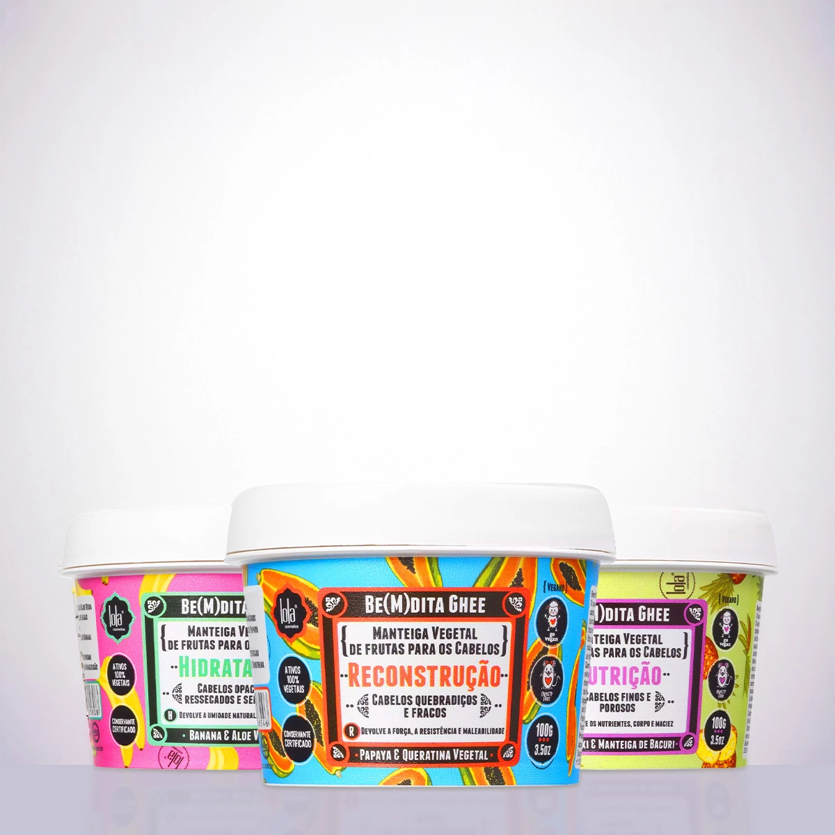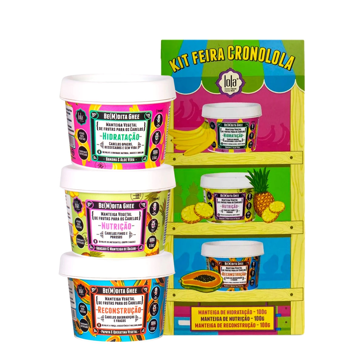 Este Kit Contém Lola From Rio Be(M)dita Ghee Hidratação - Máscara Capilar 100g: proporciona cabelos macios, super hidratados e com brilho intenso. Repõe a umidade dos fios, agindo de dentro para fora. Lola From Rio Be(M)dita Ghee Reconstrução - Máscara Capilar 100g: confere fios fortes, com vitalidade e maciez intensa. Seus ativos penetram profundamente na fibra capilar, para auxiliar na reposição de aminoácidos nos fios. Lola From Rio Be(M)dita Ghee Nutrição - Máscara Capilar 100g: repõe nutrientes e óleos essenciais para fios mais saudáveis. Com textura cremosa, seus ativos penetram profundamente na fibra capilar, que auxiliam a repor lipídeos essenciais aos fios. Conselho de AplicaçãoLola From Rio Kit Feira Cronolola - O Cronograma Capilar Essencial para Renovar os Fios