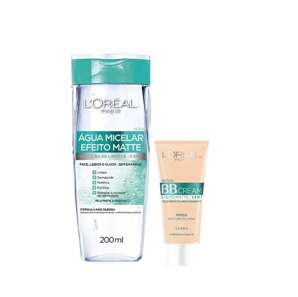 L'Oréal Paris 5 em 1 Efeito Matte Água Micelar 200ml e BB Cream Clara FPS 50 30g