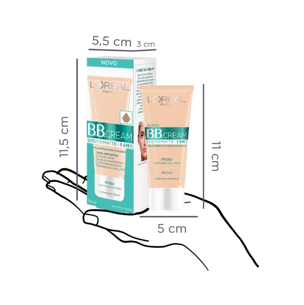 L'Oréal Paris 5 em 1 Efeito Matte FPS 50 Media BB Cream 30g