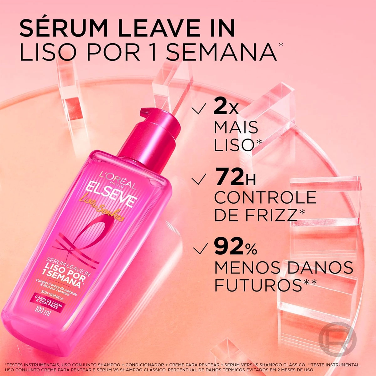 L'Oréal Paris Elseve Liso dos Sonhos - Sérum Leave-in 100ml Alcance o Liso dos Sonhos com o sérum leave-in Elseve de L’Oréal Paris. Com uma fórmula inovadora e ativada por calor, proporciona uma barreira invisível na fibra capilar, protegendo os fios contra umidade e mantendo o efeito liso por mais tempo. Garante madeixas sem frizz, alinhadas, brilhosas e leves por até 1 semana.