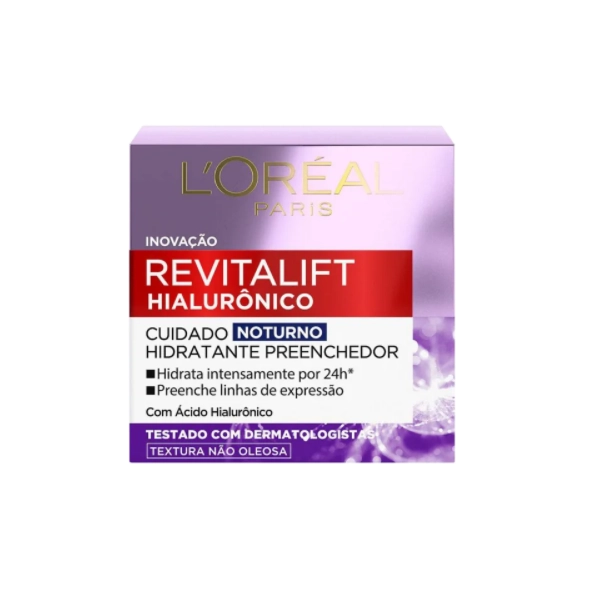 L'Oréal Paris Revitalift Hialurônico Tratamento Noturno - Creme Anti-Idade 50ml: proporciona um rosto revitalizado em instantes, com pele macia e lisinha.