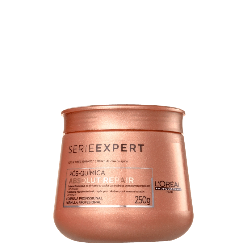 Máscara capilar para cabelos quimicamente tratados. L'Oréal Professionnel Absolut Repair Pós-Química Multi-Reconstrutor Máscara Capilar fortalece e resgata a saúde da fibra capilar, além de proporcionar maciez e brilho extremo. Desenvolvido especialmente para atender as necessidades das brasileiras, a Máscara Absolut Repair Pós-Química Multi-Reconstrutor L'Oréal Professionnel possui poderosos ativos com alto poder nutritivo, que ajudam a eliminar as pontas duplas, hidratam e promovem a diminuição da quebra. Seu cabelo fica sedoso e com balanço natural. Complexo Pro-Spirulin: à base de Spirulina, ativo natural com alta capacidade nutritiva, ele reconstrói intensamente a fibra capilar. Hydrovance: oferece duas vezes mais nutrição e hidratação aos fios, além de reduzir pontas duplas e promover maciez e flexibilidade. Com o cabelo limpo e úmido, aplique a máscara, mecha a mecha, e massageie levemente. Deixe agir por 5 minutos e enxágue. Cabelo nutrido, hidratado e com muito movimento. Experimente também a Máscara Capilar L'Oréal Professionnel Serie Expert Blondifier Gloss para cabelos loiros que precisam de reparação. L'Oréal Professionnel Absolut Repair Pós-Química Multi-Reconstrutor