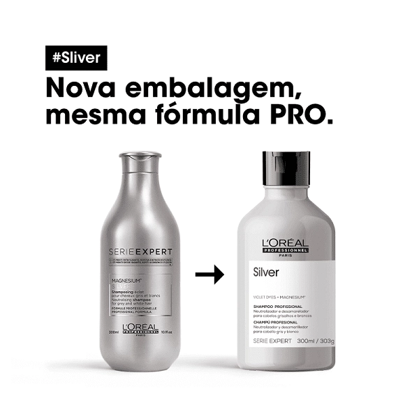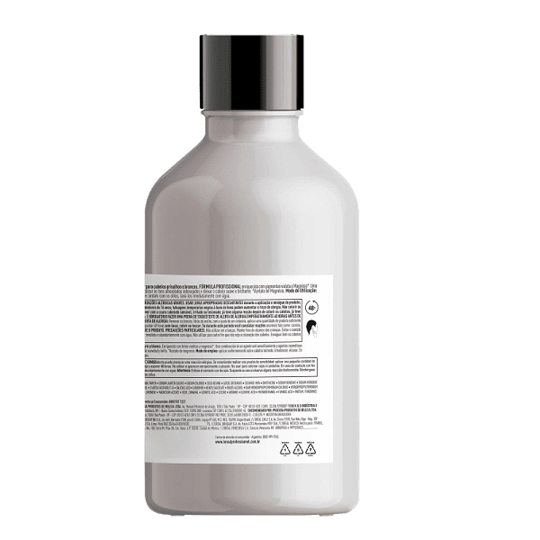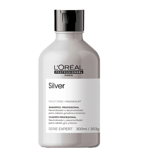 Shampoo para cabelos grisalhos, brancos ou loiros. L'Oréal Professionnel Expert Silver Shampoo neutraliza e elimina os reflexos amarelados dos fios. Para brilho e proteção da cor do cabelo. L'Oréal Professionnel Silver tem o poder de realçar o brilho e manter a cor viva e radiante. Além disso, ajuda a prevenir o amarelado e combater os já existentes para você ficar com a cor radiante e viva todos os dias. Conselho de Aplicação
