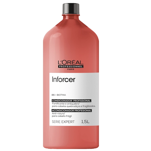 Condicionador para cabelos frágeis e quebradiços. L'Oréal Professionnel Inforcer Serie Expert previne imediatamente a quebra. Fios mais fortes e resistentes. O cabelo fica mais saudável, macio e brilhante. Com L'Oréal Professionnel Inforcer Serie Expert dia após dia a fibra capilar parece inquebrável. Cabelos com dificuldade de crescer recebem um tratamento nutritivo que estimula o seu crescimento. Este estimulo é feito em fios já existentes, que crescem mais fortes e saudáveis. Conselho de Aplicação Distribua de maneira uniforme por todo o cabelo lavado e seco com uma toalha. Deixe no cabelo de 2 a 3 minutos e depois enxague completamente. Passar o condicionador na raiz desregula a oleosidade e pode provocar caspas. Portanto, aplique apenas no comprimento e pontas para garantir um desembaraço perfeito sem comprometer a saúde do couro cabeludo.