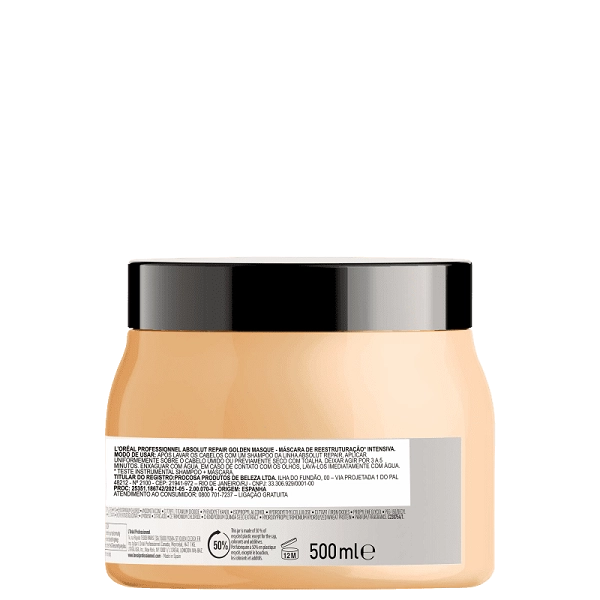 Máscara de tratamento em creme-gel para cabelos danificados. Por ter textura leve, L'Oréal Professionnel Serie Expert Absolut Repair Gold Quinoa + Protein Instant Resurfacing Golden Masque restaura sem pesar, até mesmo os fios mais finos. Deixa o cabelo mais suave e com brilho intenso, perfeito para quem precisa tratar, mas não gosta da sensação de peso pós tratamento. A fórmula dourada da Máscara Absolut Repair Gold Quinoa + Protein Golden L'Oréal Professionnel atua na reparação da fibra capilar para que o cabelo revele uma aparência mais saudável. Sua textura inovadora permite unir o poder de tratamento dos ativos com a leveza de um gel, e as partículas douradas conferem brilho intenso aos fios. Conselho de Aplicação Espalhe a máscara no cabelo limpo e úmido, nos comprimentos e pontas. Deixe agir por cerca de 5 minutos e enxágue. Sempre respeite o tempo de pausa da máscara, sem diminuir ou ultrapassar. Assim, o resultado será efetivo, como o esperado.