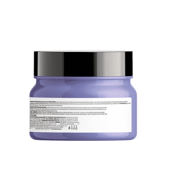 Máscara para cabelos loiros, descoloridos e com mechas. L'Oréal Professionnel Serie Expert Blondifier Cool é ideal para neutralizar o tom, além de nutrir os fios. A Máscara L'Oréal Professionnel Serie Expert Blondifier Cool proporciona nutrição profunda e neutralização dos tons amarelos indesejados e brilho intenso. Assim, garante um loiro com tom frio perfeito, maciez e luminosidade aos fios. A linha Blondifier foi desenvolvida especialmente para isso: um tratamento iluminador e neutralizante para loiros ou descoloridos. Seu principal ingrediente, o Açaí Polyphenols, é um importante antioxidante responsável por prevenir a oxidação dos cabelos loiros ou descoloridos, sensíveis às exposições climáticas, poluição e outros fatores externos. Além disso, os pigmentos roxos presentes da fórmula de L’Oréal Professionnel Serie Expert Blondifier Cool retiram tons amarelados ou alaranjados que surgem com o tempo e têm concentração controlada para que não sobrecarreguem os fios. Após lavar o cabelo com shampoo, se achar necessário, aplique o condicionador. E então, aplique a máscara pelo comprimento e pontas. Deixe agir no cabelo por 3-5 minutos. Em seguida, enxágue completamente. Para potencializar o resultado, massageie mecha a mecha, deslizando as mãos no sentido do crescimento do cabelo, com o movimento de enluvá-lo. Espalhe bem. Conselho de Aplicação