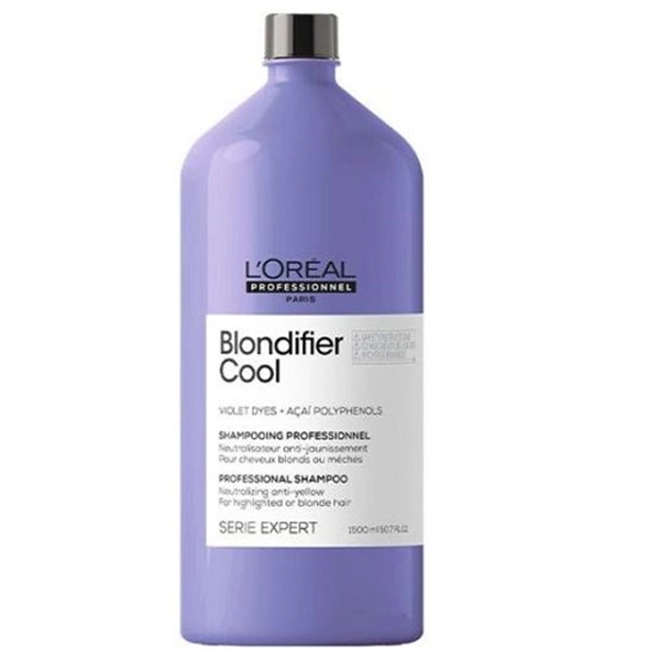 Shampoo matizador para cabelos loiros descoloridos e platinados. L’Oréal Professionnel Serie Expert Blondifier Cool neutraliza e esfria o tom enquanto trata. Os pigmentos roxos presentes da fórmula do Shampoo L’Oréal Professionnel Serie Expert Blondifier Cool retiram tons amarelados ou alaranjados que surgem com o tempo e têm concentração controlada para que não sobrecarreguem os fios. Limpa suavemente e hidrata. Garante os fios na cor perfeita, enquanto protege contra o desgaste diário. Conselho de Aplicação Aplique o shampoo nos fios molhados e massageie delicadamente o couro cabeludo. Depois, arraste o shampoo para as pontas e massageie também. Enxágue completamente. Cuidados em casa: seguir um cronograma capilar é o segredo para ter fios lindos, saudáveis e com uma coloração intensa, e no caso dos cabelos loiros e finos, não é diferente.