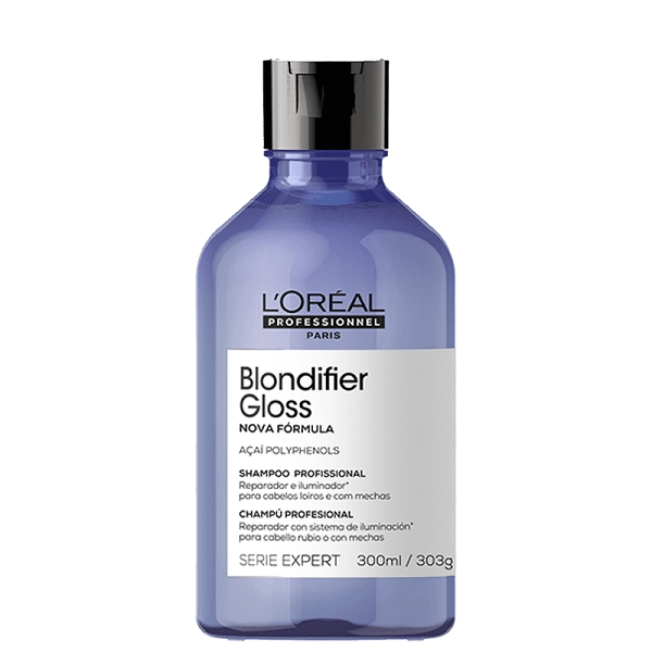 Shampoo para loiros, descoloridos e com mechas. L’Oréal Professionnel Blondifier Gloss restaura e ilumina os fios, proporcionando maciez e nutrição. O Shampoo L’Oréal Professionnel Blondifier Gloss limpa suavemente, nutre os fios e intensifica o brilho multidimensional do cabelo loiro. Seu principal ingrediente, o Açai Polyphenols, é um importante antioxidante responsável por prevenir a oxidação dos cabelos loiros ou descoloridos, sensíveis às exposições climáticas, poluição e outros fatores externos. Faz parte da linha Blondifier, desenvolvida especialmente para um tratamento iluminador para loiros ou descoloridos. Conselho de Aplicação Distribuir uniformemente o shampoo por todo o cabelo molhado e fazer espuma. Enxaguar completamente. Repetir o processo se necessário. Faça sempre duas lavagens com o shampoo. A primeira irá retirar todas as impurezas mais pesadas, enquanto a segunda finaliza a higienização do couro cabeludo e inicia o tratamento.