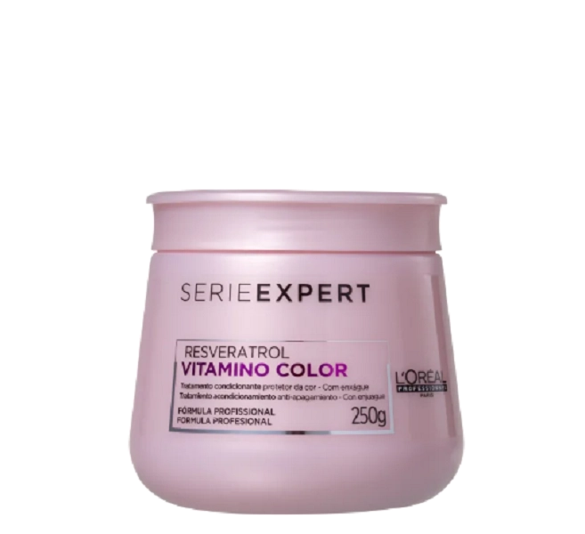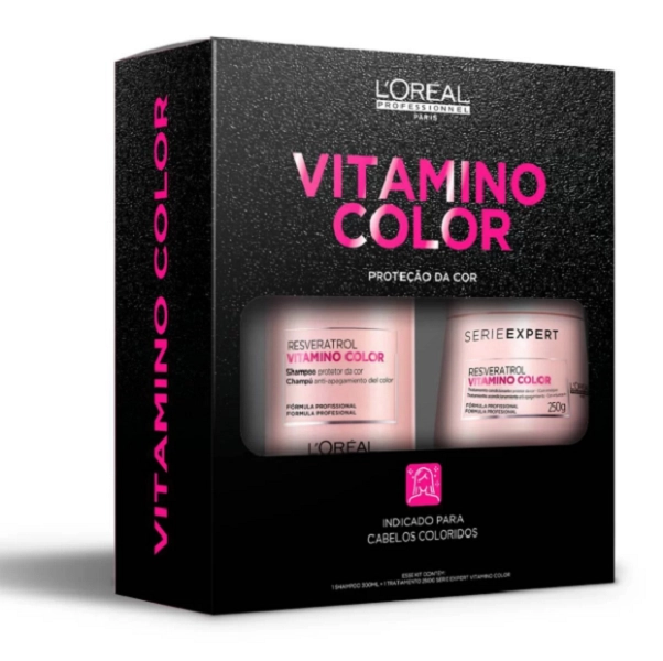 Kit de tratamento para cabelos coloridos. Kit L’Oréal Professionnel Vitamino Color Treat impede o desbotamento e mantém a cor bonita por mais tempo. Ideal para cabelos ruivos, loiros e em outros tons. Kit L’Oréal Professionnel Vitamino Color Treat garante um tratamento intensivo diário para garantir a vibração e brilho. Conta com agentes antioxidantes que protegem dos danos causados pelo sol, maior inimigo da coloração, além de trazer maciez. Contém L'Oréal Professionnel Expert Vitamino Color A-OX - Shampoo 300ml: prolonga o efeito da cor por mais tempo e previne o desbotamento precoce. L'Oréal Professionnel Expert Vitamino Color A-OX - Máscara Capilar 250g: hidrata, nutre e protege o cabelo para uma cor radiante. Neohespiridina: preserva a cor por mais tempo e evita o desbotamento. Tocoferol: fortalece os fios e promove proteção da cor para aumentar a sua durabilidade. Filtro UV: protege os cabelos do desbotamento e dos danos causados pelo sol. Pantenol: dá maciez e brilho aos fios. Aplique o shampoo no couro cabeludo úmido. Massageie delicadamente, enxágue e repita a operação. Remova o excesso de umidade dos fios, separe em mechas, e aplique a máscara pelo comprimento e pontas. Espalhe bem e aguarde 5 a 10 minutos antes de enxaguar. L'Oréal Professionnel Vitamino Color Duo