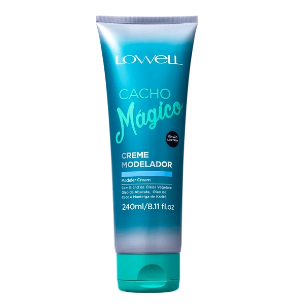 Creme modelador de cachos para cabelos cacheados, crespos e ondulados. Lowell Cacho Mágico define, hidrata, desembaraça e controla o frizz e o volume.