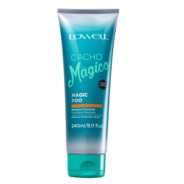 Shampoo funcional para cabelos cacheados. Suave, Lowell Cacho Mágico Magic Poo Shampoo ajuda a hidratar, proteger e disciplinar os cachos, além de deixar um toque sedoso e brilho bonito.
