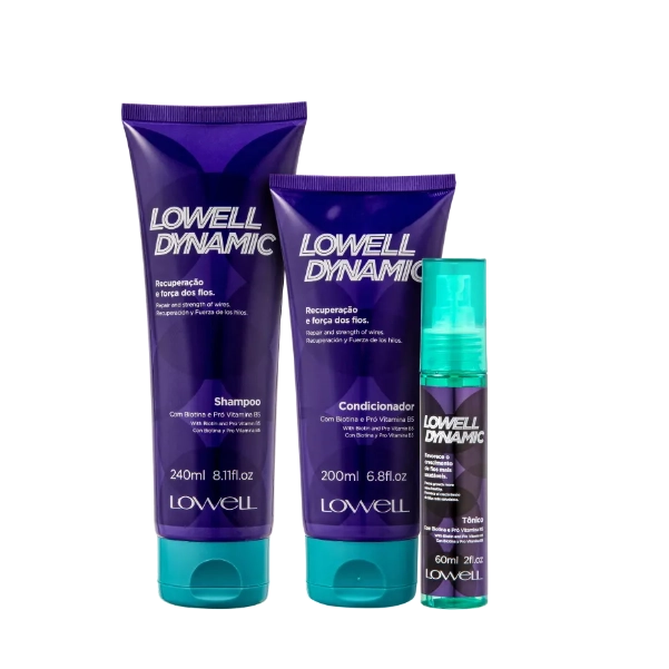 Kit de tratamento para todos os tipos de cabelo, sobretudo os com queda ou com dificuldade de crescimento. Kit Lowell Dynamic Trio ativa o couro cabeludo para combater a queda e melhorar o crescimento capilar, além de proporcionar um pentear que não quebre os fios. O Kit Lowell Dynamic Trio age no couro cabeludo para que o cabelo cresça com mais força e resistência, além de ajudar a reduzir a queda. Seus ativos ainda previnem irritações, descamações e caspas. Contém Lowell Dynamic - Shampoo 240ml: limpa e estimula o couro cabeludo para proporcionar um crescimento fortificado e combater tanto a queda quanto a quebra. Lowell Dynamic - Condicionador 200ml: nutre e fortalece a fibra capilar enquanto proporciona um pentear sem quebra. Lowell Dynamic - Tônico Capilar 60ml: nutre a raiz e estimula o crescimento fortificado dos fios. Aplique o shampoo nos cabelos úmidos e massageie até formar espuma. Enxágue completamente e repita o procedimento. Espalhe o condicionador no comprimento e pontas dos fios úmidos, após o shampoo. Massageie e enxague totalmente. Por último, agite antes de usar o tônico. Depois de lavar e condicionar os fios, retire o excesso de água e aplique sobre toda a extensão do couro cabeludo. Massageie com as pontas dos dedos. Não enxágue. Deixe secar naturalmente ou aguarde 10 minutos para usar o secador. O tônico age apenas no couro cabeludo. Assim, caso você precise proteger ou desembaraçar os fios, use um leave-in específico para o seu tipo de cabelo. Seu cabelo fica limpo, desembaraçado, fortalecido, saudável, livre de desconfortos e com crescimento mais acelerado.Lowell Dynamic Shampoo240ml+Condicionador 200ml+Tonico Antiqueda 60ml
