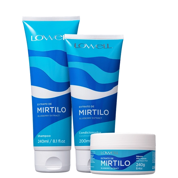 1 Lowell Extrato de Mirtilo Shampoo 240ml Shampoo Lowell Extrato de Mirtilo Shampoo para todos os tipos de cabelo. Lowell Extrato de Mirtilo proporciona brilho, limpeza efetiva e protege a vitalidade dos fios. Shampoo Lowell Extrato de Mirtilo possui fórmula biotecnológica que hidrata e garante maciez ao cabelo enquanto higieniza e combate a oleosidade excessiva, sem ressecar. Também conta com ação prebiótica, que é essencial para a prevenção da caspa. Conselho de Aplicação Condicionador Lowell Extrato de Mirtilo Condicionador para todos os tipos de cabelo. Formulado com óleos e manteigas, Lowell Extrato de Mirtilo deixa os fios macios e hidratados. Condicionador Lowell Extrato de Mirtilo combate os danos causados pelos radicais livres, além de dar brilho e aumentar a elasticidade dos fios. Também deixa o cabelo selado, hidratado e com muito brilho. Conselho de Aplicação Nossos Experts Ensinam Lowell Extrato de Mirtilo Alto Impacto Máscara Capilar Lowell Extrato de Mirtilo foi desenvolvida para auxiliar na hidratação e regeneração completa do cabelo, sem deixar o aspecto pesado. Sua fórmula devolve a maciez e ainda forma um escudo de proteção contra a perda de proteínas. Conselho de Aplicação Nossos Experts Ensinam Lowell Extrato de Mirtilo Duo Home Care e Mascara 240g
