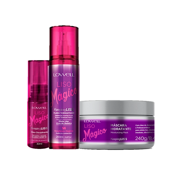 Lowell Keeping Liss Liso Mágico Fluido 200ml Oleo Capilar 30ml e Mascara Capilar 240g