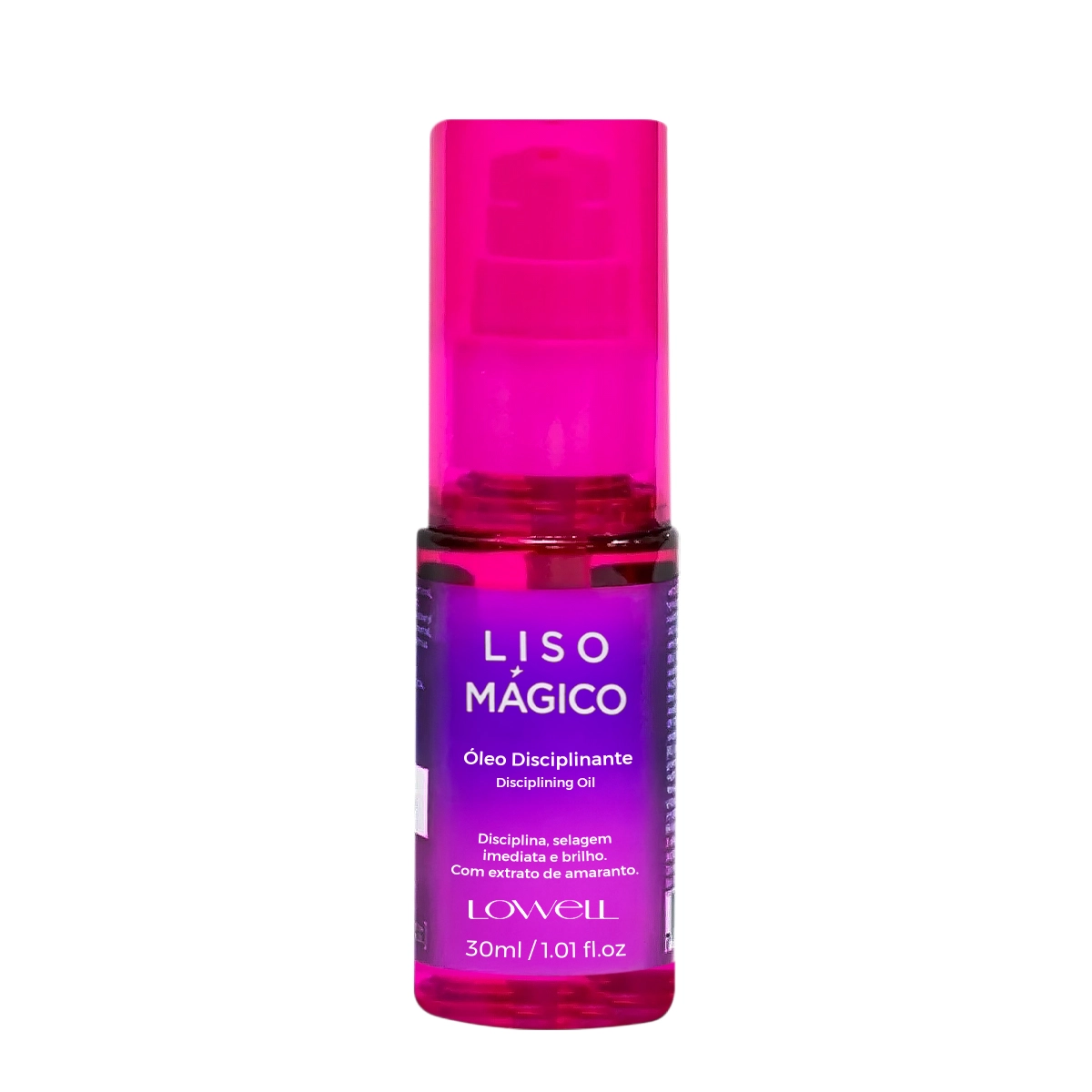 Disciplina, selagem imediata e brilho 3D! O poderoso óleo finalizador Óleo Disciplinante Liso Mágico de Lowell é indicado para disciplinar e eliminar o frizz. Possui composição exclusiva que elimina o frizz, promove toque sedoso, sela as cutículas, permite brilho 3D e prolonga o efeito liso.