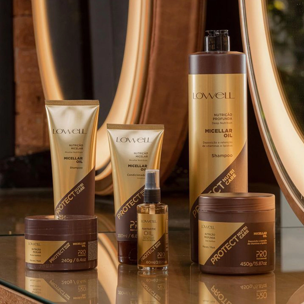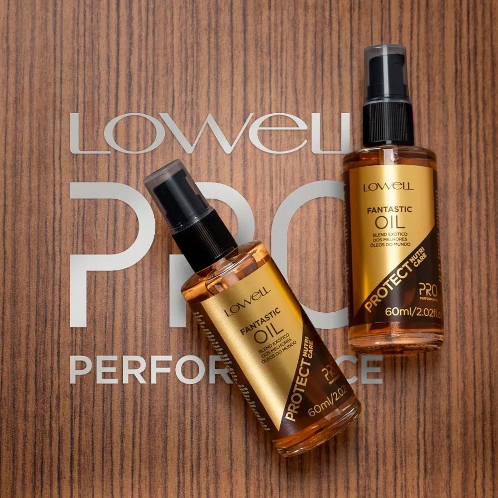Lowell Pro Protect Nutri Care - Fantastic Oil 60ml Responsável por repor a camada lipídica natural do fio ‚ enriquecido com os melhores óleos do mundo. Um concentrado que oferece alta performance na reposição dos nutrientes vitais para a fibra capilar. Extra nutrição, emoliência, máxima suavidade e brilho extremo garantidos. Conselho de Aplicação