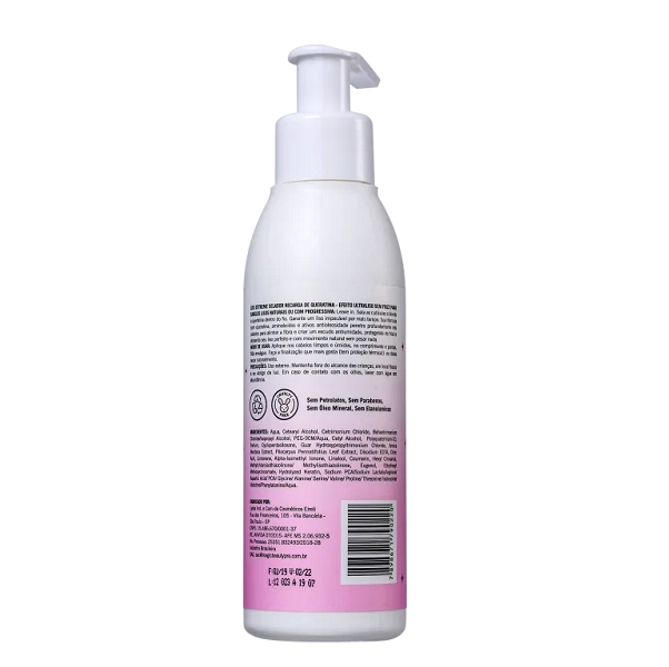 Aplique o leave-in nos cabelos limpos e úmidos, no comprimento e pontas. Não enxágue. Finalize como desejar ou deixe secar naturalmente.