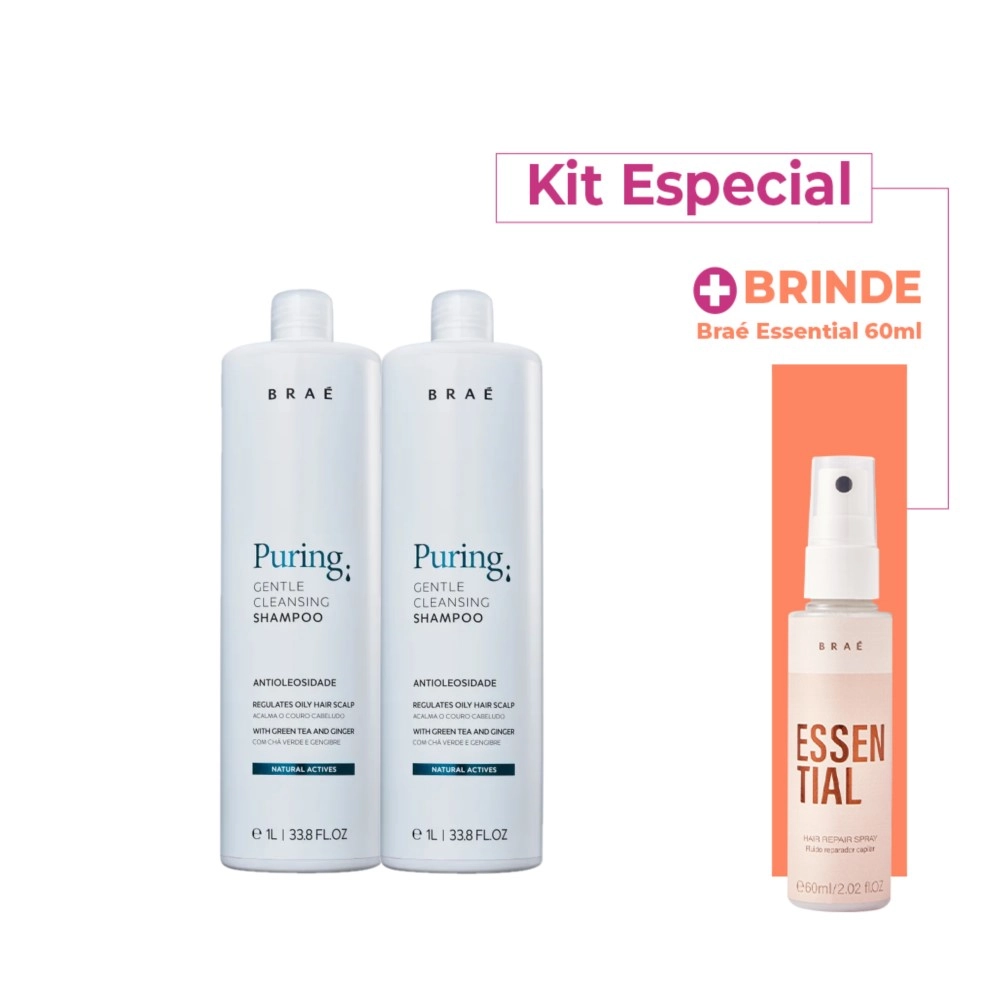 Kit Braé Puring Shampoo Anti-Oleosidade 1L Especial (2 unidades)