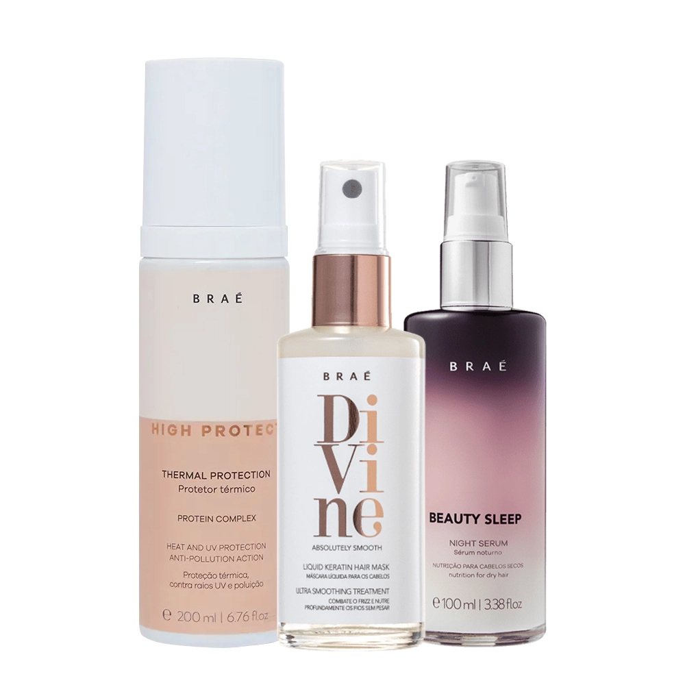 Kit Braé High Protect Thermal Protection Beauty Sleep Night e Braé Divine (3 produtos)
