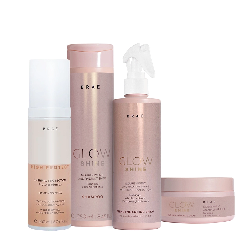 Kit Braé High Protect Thermal Glow Shine Shampo Máscara e Ativador de brilho (4 produtos)