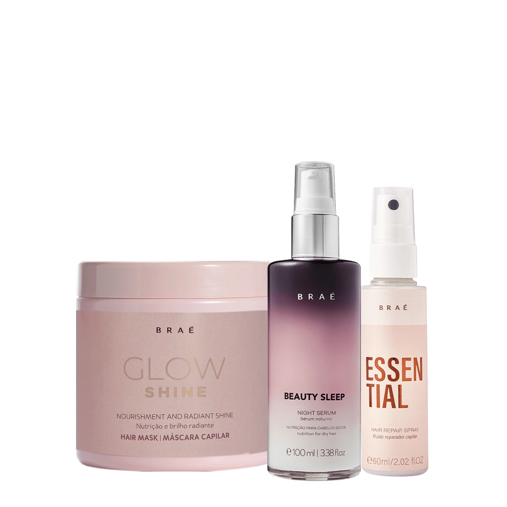 Kit Braé Glow Shine Máscara Beauty Sleep e Mini Essential (3 Produtos)