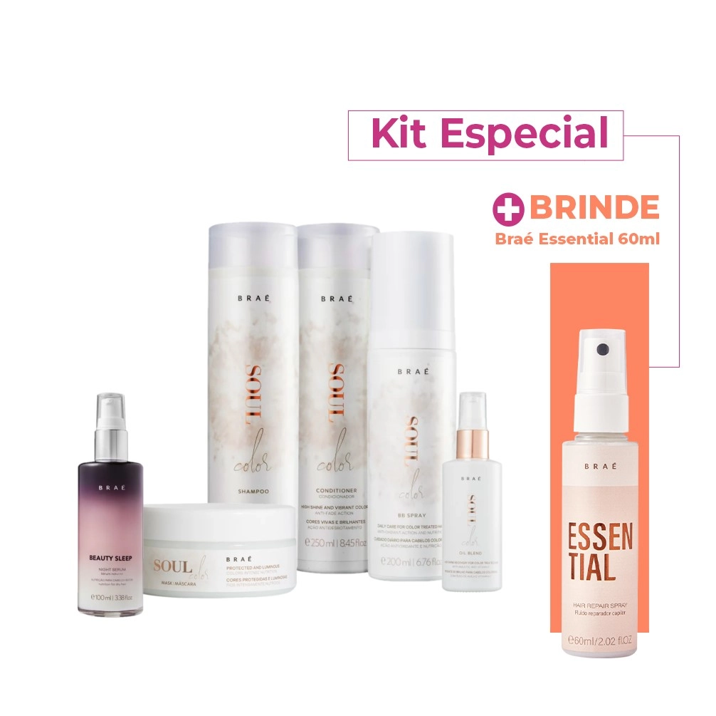 Braé Soul Color Duo 250ml Leave in 200ml Mascara 200g Oil Blend 60ml Prime Spray 100ml e Beauty Sleep 100ml